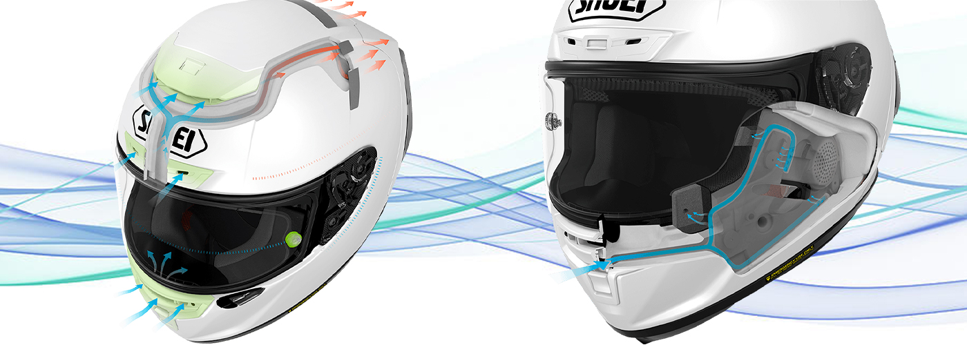 Shoei’s new Race Shield System is engineered specifically for high-performance situations. The CWR-F Shield is equipped with Shoei’s exclusive Vortex Generators which are small ridges along the shield edges that help lead airflow away from the helmet, reducing drag. There is also a rib-like framework around the lens to assist in rigidity and decreased flex at speed. The double-locking technology keeps the seal tight and secure so there are no accidental openings. Shoei also designed the 2D, optically-correct shield to be PinlockEVO-ready and flat surfaced to accept tear-offs. When you’re as fast as Marc Marquez, a superior shielding system is pivotal.