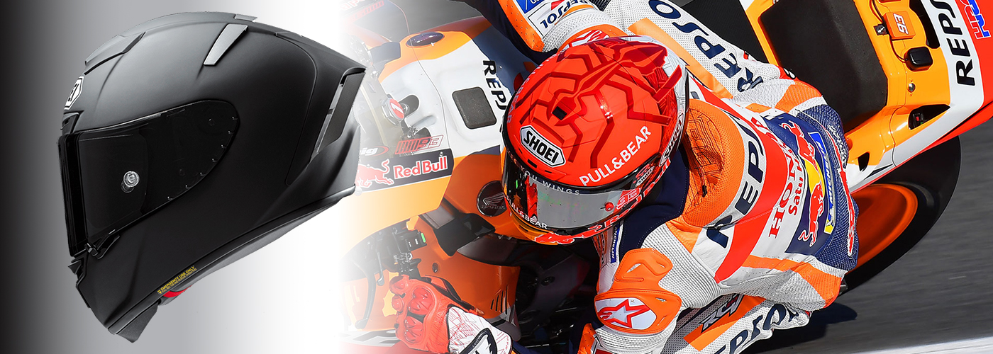 Shoei’s saw to it that their state-of-the-art wind tunnel laboratory tested every ergonomic feature to ensure the new geometry deflects and forfeits wind resistance even beyond the leading edges. There’s a new patent-pending Rear Stabilizer, along with Rear Flaps and removable lower Air Spoiler, that optimize stability under varying track conditions. Position changes at race pace are done with ease without worrying about wind jostle and turbulence. Staving drag and cutting ounces means shaving milliseconds off lap times. Just ask the Antman, #93, himself, he seems to agree.