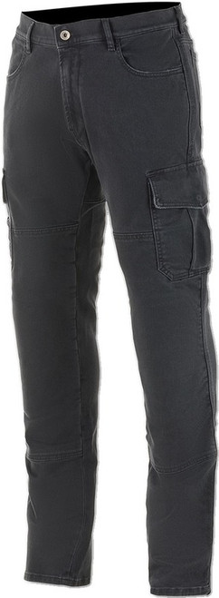 Black stonewashed denim with knitted fabric construction for enhanced protection against abrasion and cuts. Inner liner for enhanced rider comfort. Bio Flex knee and hip armor for high levels of impact protection. Two pockets on front and back and two cargo pockets for secure and convenient storage. Reinforced seat area for enhanced rider comfort.