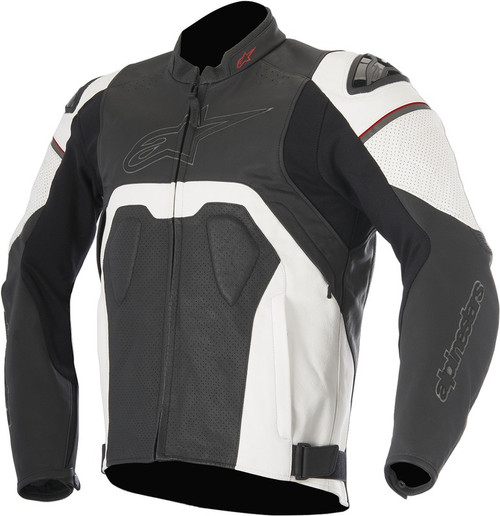 1.1 mm genuine cow leather, natural finishing Perforated leather path for maximum ventilation Removable CE-certified Bio-Armor shoulders and elbow protectors Chest and back pad compartments with Polyethylene (PE) padding (Alpinestars Nucleon chest pads available as accessory upgrade, sold separately) Dynamic Friction Shield (DFS) external dual density Thermoplastic Polyurethane (TPU) sliders: shoulder Large accordion stretch panels helps movement and comfort on the bike Stretch panels on sleeves to further improve fit and feel Snap button system to integrate the Level 2CE certified Alpinestars Nucleon Back protector Pre-curved sleeves construction Multi-panel liner construction and 3D mesh inserts to improve comfort and ventilation Soft collar construction with snap button volume adjuster for optimized comfort Hi-frequency reflective details
