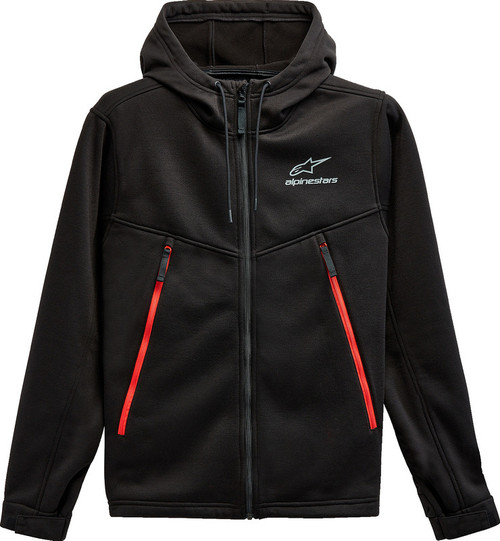 Reverse coil zipper front, bungie adjusters at hood Bonded jacket with removable hood Internal main label and external label branding and HD combo logo at chest On seam hand pockets, half rib cuffs and rib hem