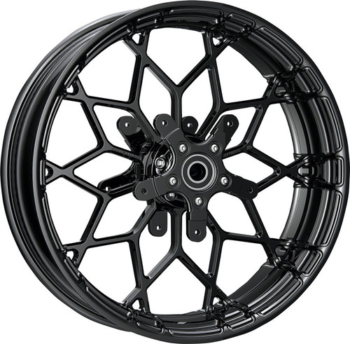 The perfect solution when updating to a 180mm fat tire on the front of your 2020 or newer touring model Gloss black powder coated forged aluminum rim (not cast) with gloss black anodized hubs and disc adapters Accepts factory rotors to save even more cost (can be upgraded to jagged series for an additional cost) Accepts Arlen Ness rotor adapters with factory or after market rotors/disc options
