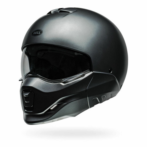 A brutal combination of attitude, style, and functionality makes the Broozer a true streetfighter. Dual-certified for both full-face and open-face riding, the removable chin bar and integrated drop-down shield means the Broozer is ready for anything. Combine this with the Bell fit you love and a lean fighting weight of 1350 grams, and you have yourself a ringer.