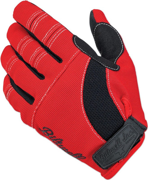 Two-way stretch polyester back panel construction for ventilation and comfort ,Single-layer synthetic leather palm with reinforced thumbs ,Lycra expansion panels in fingers for a snug, comfortable fit ,Expanding knuckle joints for better dexterity ,Screen-printed graphics and traction tips on the first two fingers