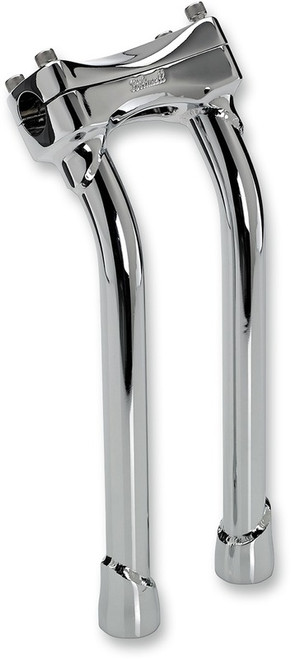 Investment-cast steel one-piece top clamp ,TIG welded 0.120" wall 4130 chromoly steel uprights with 1/2"-13 threads ,Handlebar clamp bolt patterns fit speedo/tach brackets on many stock model year Harleys ,For 1" bars