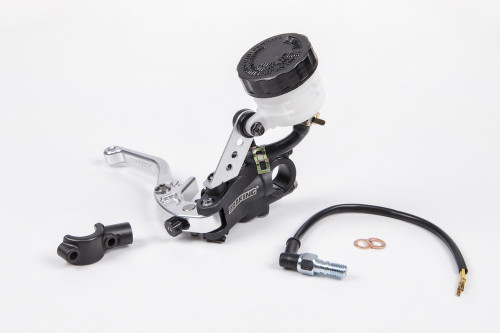 • Radial style Clutch master cyclinder features a fully folding machined lever as well as 12mm oil reservoir and even a spot to thread in a mirror.