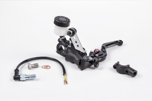 - Radial style Clutch master cyclinder features a fully folding machined lever as well as 12mm oil reservoir and even a spot to thread in a mirror.