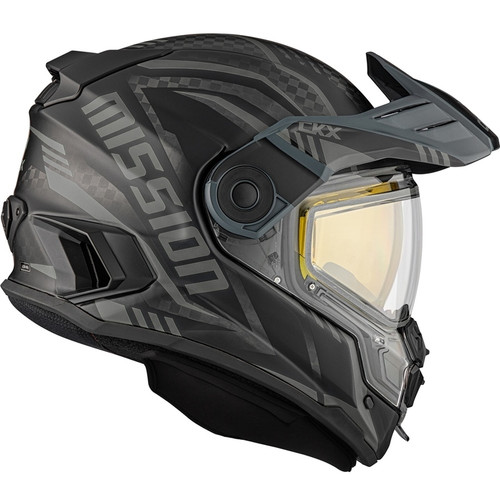 $$Experience a unique helmet that redefines trail riding. Ultra lightweight, insulated and aerodynamic, the Mission is designed to let you enjoy longer rides and at full speed without fear of extreme cold. Efficient in reducing the risk of fogging, the helmet introduces AMS, an integrated air management system. A CKX exclusive, AMS technology (patent pending) allows you to enjoy a clean environment, free from condensation and fogging by wicking away moist air to the outside. Maintain full visibility while riding and when stopping, take advantage of a wide opening by lifting the oversized visor. In one simple movement and without removing the helmet, you can drink, eat or converse with your trail-riding buddies!