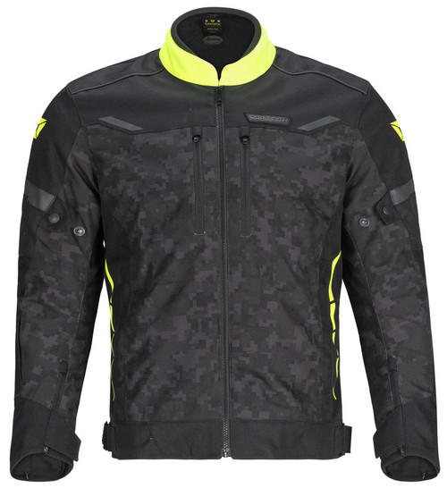 Performance fit, abrasion-resistant 600D polyester shell Waterproof zip-out full sleeve rain liner Two zippered hand and chest pockets, rabbit pouch, one hidden wrist pocket, and four internal storage pockets Pre-curved and rotated sleeves CE-level 2 SAFE-TECH shoulder and elbow armor Removable EVA foam back pad (fits SAFE-TECH 851 size L back pad) Includes an 8 jacket-to-pant zipper attachment with pant side included Genuine YKK zippers