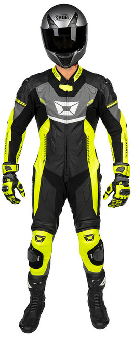 Sport-fit with rotated sleeves and pre-curved arms and legs 1.2-1.4mm drum dyed cowhide leather construction Perforated front, back, legs, and arms Accordion stretch panels at shoulders and elbows 4-way stretch sides and inner arms Neoprene collar for comfort TPU shoulder and elbow armor for resistance against impacts and abrasion KNOX CE-approved shoulder, elbow, and knee armor Removable EVA foam back/hip pad (shaped to fit KNOX) Genuine YKK zippers Neoprene collar Auto-locking zippered sleeve cuffs Includes knee sliders and reusable zippered storage bag