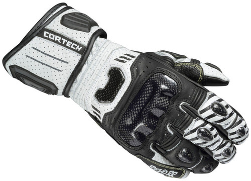 Genuine goat leather backhand and palm construction Fully perforated backhand, fingers, and thumb TPR protective gauntlet cuff Pre-curved fingers for increased comfort Reversed seam fingers construction Carbon fiber knuckle, heel slider, and finger protectors Leather plm, thumb, and pinky overlay Microfiber palm overlay Accordion paneling across top hand, fingers, and thumb Hook and loop wrist strap and cuff closure Touchscreen compatible index finger and thumb