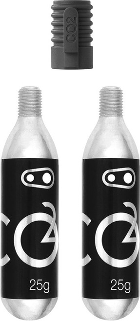 2 Threaded 25g CO2 cartridges and Klic CO2 head/cartridge adaptor (Presta only) Inflator compatible with threaded 12g, 16g, 20g, and 25g cartridges Inflator weighs only 45 g