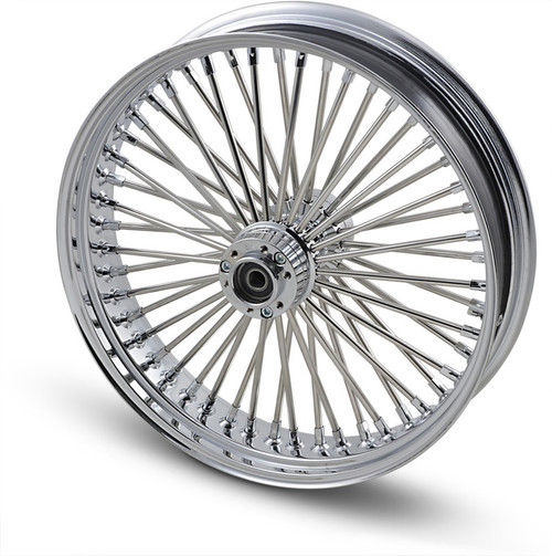Chrome billet aluminum hubs with polished stainless steel spokes and polished stainless steel nipples Wheels come completely assembled and are trued to less than .005" runout Sealed design allows tubeless tires to be used Made in the U.S.A. by RideWright Wheels Stock pulleys and rotors can be used Chrome-plated steel rims Classic spoke design 21 front wheel applications cannot use factory front fender. It is the installer's responsibility to determine the required changes.