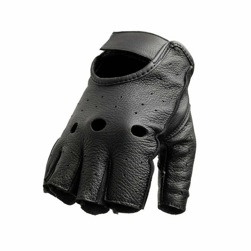 The BodyGuard are fingerless gloves crafted from soft, farmed Deer Skin leather. These have exposed knuckles, gel palms, and a Hook and Loop strap for a classic fingerless silhouette.