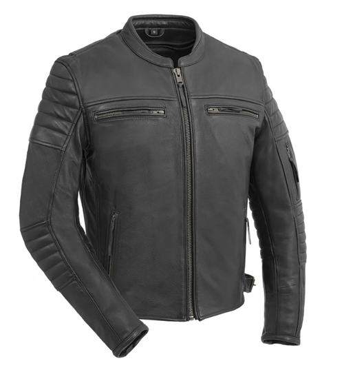 The Commuter takes a simple leather jacket and adds some style. Lots of pockets, including conceal carry and armor pockets! This one has the action back for comfort while riding, and an insulated zip out thermal liner in case the temps rise on your ride.