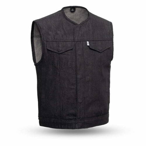 The Murdock is a club style raw denim vest with an extra feature - it has a drop tail to provide some extra low-back coverage when seated on your motorcycle. It's got a roll up collar, covered snaps and a cropped center zipper, for more comfort on the bike. It also features two conceal carry pockets, and is unlined and perfect for warm weather or layering.