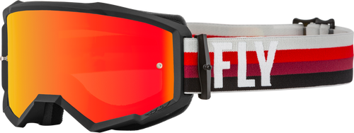 Polycarbonate lens with premium anti-scratch & anti-fog coatings Lightweight yet durable polyurethane frame Engineered frame design increases field of view providing massive peripheral vision Quick change replacement lens with pre-installed tear-off posts Premium three-layer face foam provides excellent moisture management and a tight seal Optional accessories and lens colors available Compatible with FLY nose guards 40mm adjustable double buckle strap for easy goggle tension adjustment Non-slip silicone on inside of strap ensures a secure fit to your helmet Available in adult and youth sizes Microfiber goggle bag