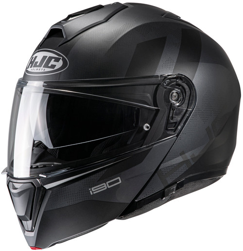 DOT and ECE approved (3XL-5XL DOT only) Bluetooth-ready design accepts SMART HJC 10B or 20B Bluetooth communicators Lightweight polycarbonate composite shell Upgraded center one-touch open/close locking system ACS Advanced Channeling Ventilation System with seven intake vents and two exhaust venturi vents at the rear spoiler SuperCool moisture-wicking interior uses advanced anti-bacterial, quick-drying fabric Crown and cheek pads are fully removable and washable Glasses groove accommodates riders who wear eyeglasses HJ-33 Pinlock-ready face shield (lens insert sold separately) Larger HJ-V9 drop down internal sun visor Patented One-Touch sun shield mechanism deploys and retracts quickly and easily with three riding positions Adjustable to three positions speaker pockets