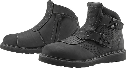 Slip-resistant sole bottom Heavy top-grain leather chassis Internal D3O ankle inserts and durable toe box and heel Impact-resistant nylon fasteners