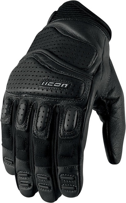 Premium abrasion-resistant Battlehide goatskin construction Padded knuckles with expansion panels Short cuff with wrist closure Stretch Cordura finger gussets Rubber fingertip armor 2-ply padded palms