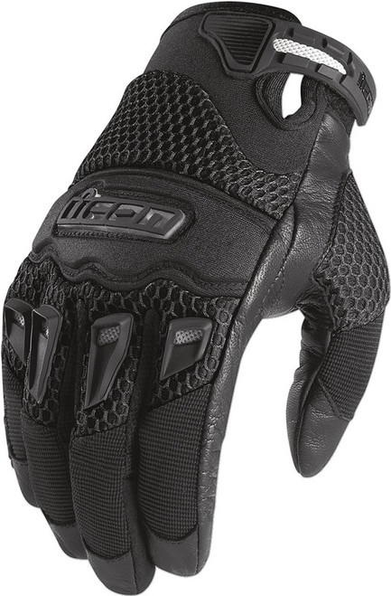 Premium grade Battlehide goatskin palm, Hi-flow backhand mesh for ventilation Synthetic leather finger gussets Hook & loop wrist closure Pre-curved palm and finger design