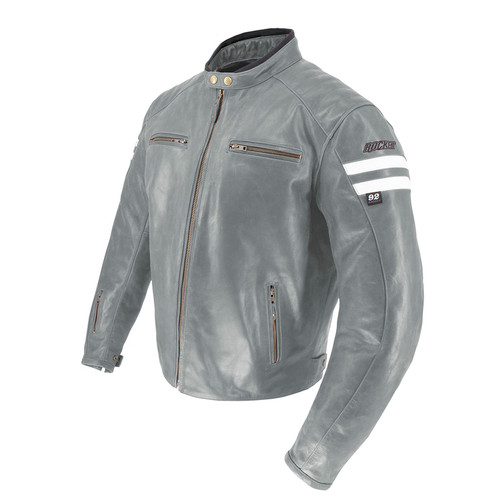 Top stitched 1.0 to 1.2mm drum dyed cowhide, specifically tailored for a relaxed fit Pockets for optional armor at the shoulders, elbows & back Zip in quilted full sleeve liner 2 inside utility pockets 4 outside pockets Adjustable neoprene lined mandarin collar Adjustable waist and cuffs 1.5 Storm flap at main zipper YKK zippers through out Subtle tone on tone badging