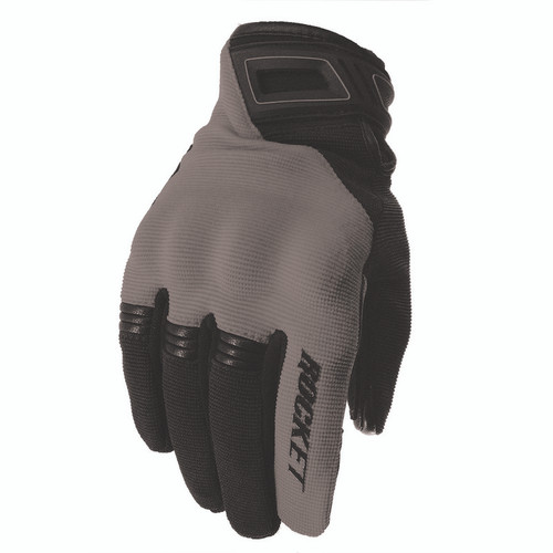 Utility grade Stretch textile Chassis Injection molded knuckle armor Contoured padding Goatskin leather palm for comfort and vibration reduction Chamude overlay on palm for Additional protection SmartTouch conductive material on index fingers for instant mobile friendly, touchscreen access Full Flex expansion panels on fingers Ergonomic, pre curved, ride friendly design Silicone printed logos Neoprene cuff with TPR hook and loop closure