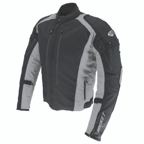 Water resistant treated Rock Tex outer shell for maximum impact resistance Externally accessible C.E. approved armor in shoulders & elbows Removable Spine Armor Variable Flow ventilation system Cross Linked Ventilation with Wind Tunnel Cooling Patent Pending Full Flex articulated back expansion panels Comfort neoprene cuff design 6 point Sure Fit custom adjustment system 2 outside pockets, 1 internal chest pocket Large padded lower back storage pocket 8 zipper plus 2 belt loops for jacket to pant attachment Removable insulated full sleeve liner with internal pocket Front and Rear reflective piping Reflective logo