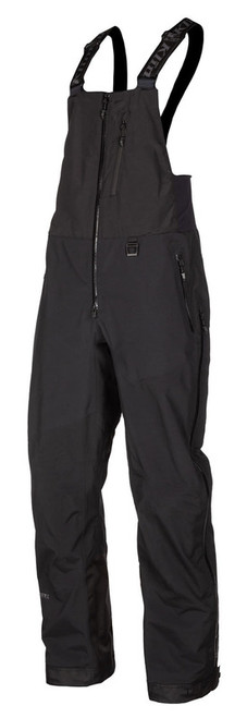GORE-TEX PERFORMANCE SHELL GUARANTEED TO KEEP YOU DRY FULL UPPER BIB CHASSIS 3M SCOTCHLITE CARBON BLACK REFLECTIVE TETHER D-RING KLIM EXCLUSIVE SEAT-DRY TECH OVERLAY ON INNER BOOT PANELS FULL LENGTH SIDE LEG ZIPS W/ DOUBLE HEADED ZIPPERS DOUBLE-HEADED FRONT ZIPPER YKK ZIPPERS SIDE LEG ZIPS DOUBLE AS VENTS 2 HAND POCKETS 1 CHEST POCKET RIDER POSITION ARTICULATION RELAXED NON-BULKY FIT MOISTURE-WICKING HANGING LINER NON-SNAG TAFFETA LOWER LEG LINERS ADJUSTABLE SNAP CUFFS VELCRO BOOT GAITER BOOT RETENTION LOOPS KEEP PANT HEM IN PLACE NON-SLIP ADJUSTABLE SUSPENDERS REMOVABLE KNEE PADS SIDE WAIST STRETCH PANELS