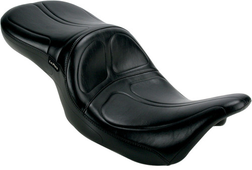 Comfortable seat that retains a custom look Special contours give good support while allowing unrestricted movement Molded one-piece foam foundation covered with premium-grade black vinyl on a 16-gauge powder-coated steel base plate Seat bottom carpeted to protect the fender Made in the U.S.A.