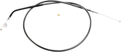 Braid color and weave match on all Magnum control cables and brake lines All fittings are polished and plated Crystal clear outer jacket offers exceptional protection against scuffing paint or chrome and will never discolor All cables are made with anti-friction inner liners, nylon adjuster inserts and are factory lubricated for smooth, consistent, long lasting operation Meets or exceeds all OE specifications for fitment, construction and endurance Assembled in the U.S.A. Length given is the length of the outer housing only, excluding the elbow Cables will also fit late style Mikuni carbs