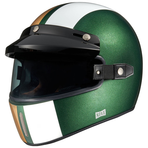 The clip-on shield, stylishly tailored with optic leather bands, gives that retro-style look. Made of PC Lexan, optical class, the shield is prepared to fit a special Raleris fog free lens.