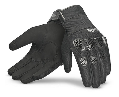 The NORU Hakken Adventure Glove is the lightest adventure riding glove in the brand's lineup, designed to offer superior feel and feedback for off-road excursions. Whether you're tackling rugged trails or cruising on paved roads, this glove ensures maximum rider control without the bulk of traditional road gloves. Featuring ventilated TPR knuckle and finger protectors, a breathable 4-way stretch mesh top, and a synthetic leather palm with additional reinforcement, it offers both protection and comfort. Stretch fourchettes enhance flexibility, while the TPR hook and loop closure ensures a secure fit for any ride.