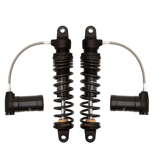 These 970 Series Piggyback Reservoir Shocks are designed and manufactured in the USA and feature a combination of a high-pressure gas mono-tube design and a deflective disc damping. This combination effectively changes the bike's overall ride on the highway. And since it features progressive-rate springs and a design that suits performance-oriented twin-shock bikes, the shocks don't fade or heat up, meaning you will experience zero transfer of bumps in the road to your back.