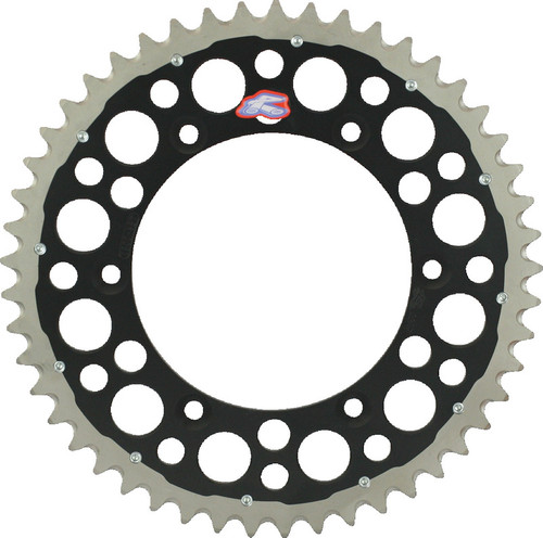 Inner ring is the same high strength Ultralight 7075 T-6 aluminum used for the standard Renthal sprocket Outer ring is electro-less nickel coated steel for ultimate durability and is designed with the minimum amount of material to keep weight down The outer ring is expanded at 200C and then fitted over the inner; this interference fit combined with the wave pattern ensures a permanent bond for the life of the chainwheel The flat socket head screws add additional strength to the chainwheel during side impacts and eliminates contact with the chain guide Self cleaning mud grooves between each tooth prevent dirt build upand reduce chainwheel wear and weight Will outlast a standard all aluminum sprocket by 3 times, yet is much lighter than an all steel rear sprocket