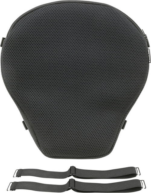 Weight is distributed over the entire seating area to improve circulation and reduce numbness Self-inflating design and adjustable pressure valve allows for fine-tuned comfort Can be used on top of the motorcycle's existing seat Superior comfort allows for extended riding time Foam internal section with mesh cover Two straps secure air pad to the seat