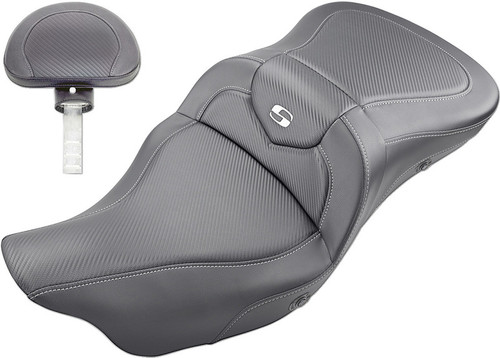 Refined split-cushion design separates the seating surface from the lumbar support to reduce tailbone/back pressure for maximum long-range comfort Seat features a combination of progressive density foam and SaddleGel inserts for superior driver and passenger comfort Pillowed soft upholstery cover backed by a compliant foam layer under the cover to provide incredible comfort and style Extends the driver's seating area by a full 2" Classic styled button-tufted cover Made in the U.S.A.