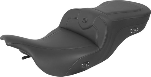 Our tall lumbar support and wide driver saddle supports the back and legs for superior comfort, while the streamlined nose improves the rider's reach to the ground Features a combination of progressive density foam and GelCore inserts for superior driver and passenger comfort Two-level heat adjustment that connects easily to bike's electrical system Independently controlled heating elements for rider and passenger Seat's styling and function is unaffected by switches or wiring Brightly colored LEDs indicate level of heat Perforated, ventilated leather cover Designed and made in the U.S.A.