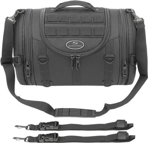 Dimensions: 16" wide x 10" deep x 10" tall (with an addition 3 expansion) Cubic Inches: 1,300 UV-rated, weather-resistant 1200d chassis Maintains shape even when empty Wide zippered center opening assures ease of loading End pockets expand out providing additional packing room when needed Internal zippered mesh pockets keep items organized Easy-mounted to sissy bar plus full mounting strap kit for a variety of mounting options