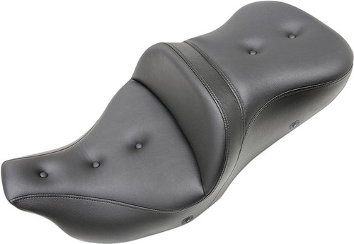 Exclusive, unique split-cushion design separates the seating surface from the lumbar support, reducing tailbone and back pressure for maximum long-range comfort Saddlemen's premier touring seat family, engineered and styled to add superb comfort and quality to a Harley-Davidson Trike model Supple SaddleHyde offers a combination of comfort, glove-soft leathery feel, weather-resistance and no-maintenance good looks Specially designed seat pan mates perfectly with the shape of the Trike chassis and does not interfere with the passenger grab rail Extra plush saddle as compared to a standard Road Sofa so its well suited for the extra seat time a Trike rider experiences Features a combination of progressive-density foam and GelCore inserts for superior driver and passenger comfort SaddleGel in front and rear increases comfort for both driver and passenger Seat's styling and function is unaffected by switches or wiring