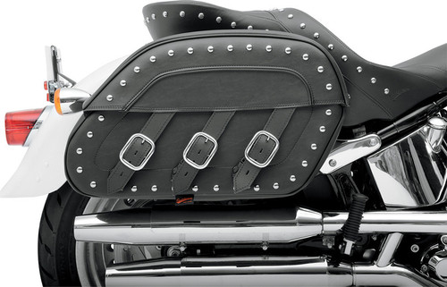 Designed for heavier loads and maximum durability Specially built to fit bike perfectly; molded plastic frame slips over posts directly mounted to the fender struts Remove saddlebags easily by releasing two QTL (Quarter Turn Locking) pins found inside each bag Lockable, quick-release hidden buckles under each strap are easy to use; protect contents and prevent unauthorized removal of bags from bike Includes a chromed metal support that fits behind each bag for extra strength and security (also easily removed when bags are not to be used for an extended period) Inner stiffeners and rigid back maintain bag shape, even when empty All necessary hardware, including turn signal relocators if needed, and instructions are included Made of water-resistant materials; cleans easily with a damp cloth, or for best results use Saddlemen's saddlebag cleaner and conditioner, available separately