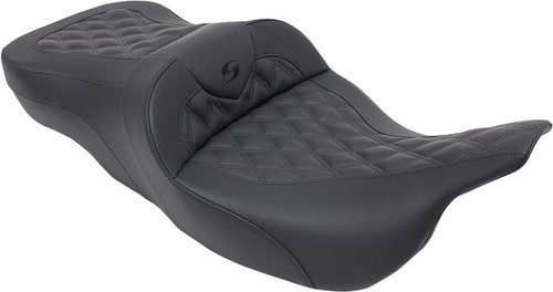 Refined split-cushion design separates the seating surface from the lumbar support to reduce tailbone/back pressure for maximum long-range comfort Seat features a combination of progressive density foam and GelCore inserts for superior driver and passenger comfort Passenger pillion area has received special attention for comfort and to allow a clear view of the road ahead Seat has a perforated, ventilated leather cover for the ultimate in luxurious comfort, feel and looks Two-level heat adjustment that connect easily to bikes electrical system Independently controlled heating elements for rider and passenger Seats styling and function is unaffected by switches or wiring Brightly colored LEDs indicate level of heat