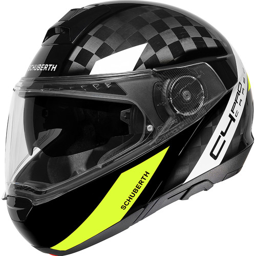 The Schuberth C4 Carbon convinces at high speeds as well as on big tours. The comfort of a flip-up helmet with an ultra=light carbon outer shell makes for a premium combination. This is where Schuberth Formula 1 racing technology unrestrainedly comes on the road and becomes a daily companion. Its integrated communication technology is unique to a carbon helmet. Experience four exciting graphics offered for this helmet.