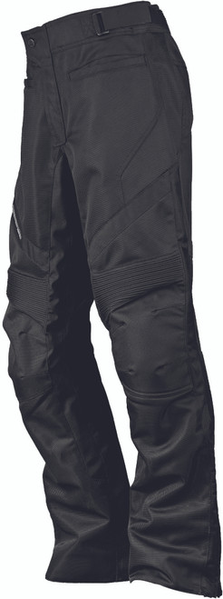 Durable poly mesh with 600 denier nylon at the knees and seat areas Exo-Tec CE approved ventilated armor at the knees Lightweight perforated polyester mesh lining for maximum airflow NightViz reflective trim provides increased night time visibility Stretch panels on upper knee for added flexibility and comfort Dual-adjustment waist belts and single button fly Belt loop for jacket attachment Removable AirGuard windproof liner included for cooler temperatures Inner pockets for optional Hip Armor 1 year warranty