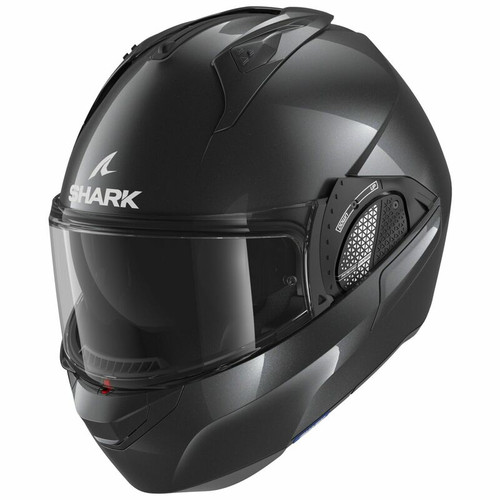 EVO-GT Always the benchmark. The ultimate evolution of the original EVO concept. SHARK, creator of the EVO concept, goes even further with a "Grand Touring" version of its new modular: the EVO-GT. Equally at ease in jet or full-body position, this premium model benefits from the latest SHARK innovations to satisfy the most demanding users. Robust, comfortable and practical, the EVO-GT motorcycle helmet swallows up the miles: it is the ideal partner whatever the journey! Changing from a jet motorcycle helmet to a full-face has never been easier and safer. Unequaled premium comfort in both static and dynamic conditions. This new generation modular benefits from the patented Auto-up & Auto-down system which allows the automatic raising of the screen when handling the chin guard. Equipped with an optical class 1 screen, it offers an incomparable quality of vision. The EVO-GT is equipped with the V-Tech Locking System which allows an optimized locking of the chin bar for increased safety and ergonomics.