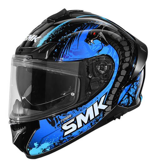 The SMK Typhoon Helmet features a sleek, compact, and aerodynamic shell, designed for riders seeking performance, comfort, and safety. With advanced ventilation, a drop-down sunshield, and customizable outer shield options, its an all-in-one solution for any adventure.