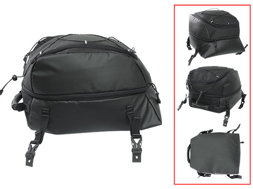 - Mesh pockets on inside & pull bunjee on top (can store shovel blade on bunjee & shovel pole/avalanche probe inside)