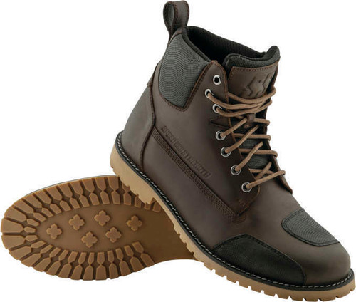 Synthetic leather upper Micro-breathable mesh inner liner Internal heel and toe reinforcements Reinforced ankle padding. Reinforced toe shifter pad Anti-slip rubber outsole Lace closure C.E. EN 13634:2017 rated protection.