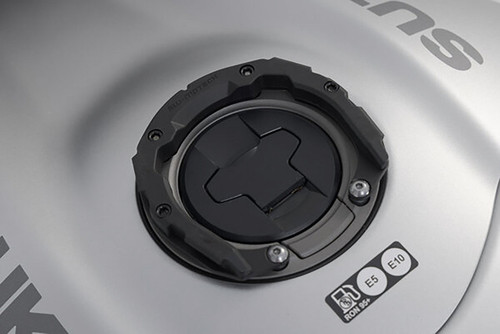 QUICK-LOCK locking mechanism can be operated easily thanks to the magnetic guidance aid from Fidlock technology that snaps lock firmly into place Sliding top ring comes already pre-assembled on the tank bag with a guide rail and the tank bag does not need to be drilled Top ring can be custom-aligned onto the guide rail on the underside of the tank bag and screwed in tight when the right angle is found When changing to another motorcycle, the position of the upper ring can be adjusted accordingly The strength of the magnets supports the positioning of the tank bag Fasten the tank bag in one simple step and drive off Robust fibreglass reinforced plastic with its high-precision locking geometry is responsible for ensuring that the tank bag remains firmly in place in all situations Bike-specific adapter ring for the best fit and customized solutions
