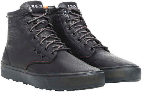 The Dartwood Gore-Tex® motorcycle shoes combine maximum riding and walking comfort with high levels of certified protection. The Dartwood Gore-Tex® shoes are both waterproof and breathable, owing to the Gore-Tex® Extended Comfort membrane. The upper is made of full-grain leather, and safety is guaranteed by reinforcements on the toe and heel and by ankle protection inserts in D3O®, a material that has the ability to become rigid in the event of a collision, thus protecting the foot only when necessary. The Groundtrax® sole, made of wear-resistant rubber, also ensures safety, as well as stability even on slippery ground, as its particular construction with hexagonal tread allows for better traction. Maximum protection is guaranteed by the special Zplate® insert in molded polymer, which combines transverse rigidity for maximum safety and longitudinal flexibility owing to its Z-shape. Zplate® allows the shoes to follow all the natural movements of the foot, both when riding and when walking, while simultaneously protecting it by ensuring the shoes are not crushed in case of impact. OrthoLite® insoles offer long-lasting comfort, due to both their level of cushioning and breathability. Fastening is easy, owing to the side zipper system and the laces, which can be easily tidied away below the elasticated band on the tongue.